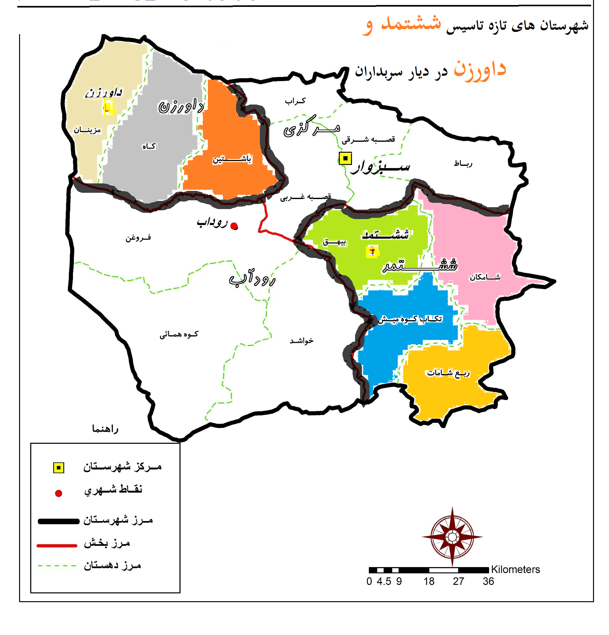 شهرستان های تازه تاسیس ششتمد و داورزن در دیار سربداران